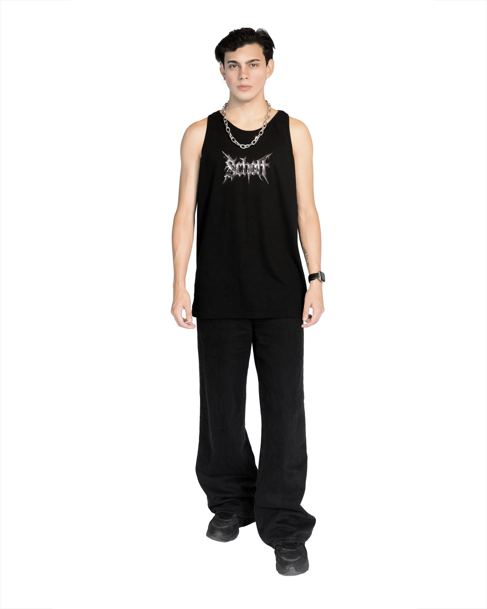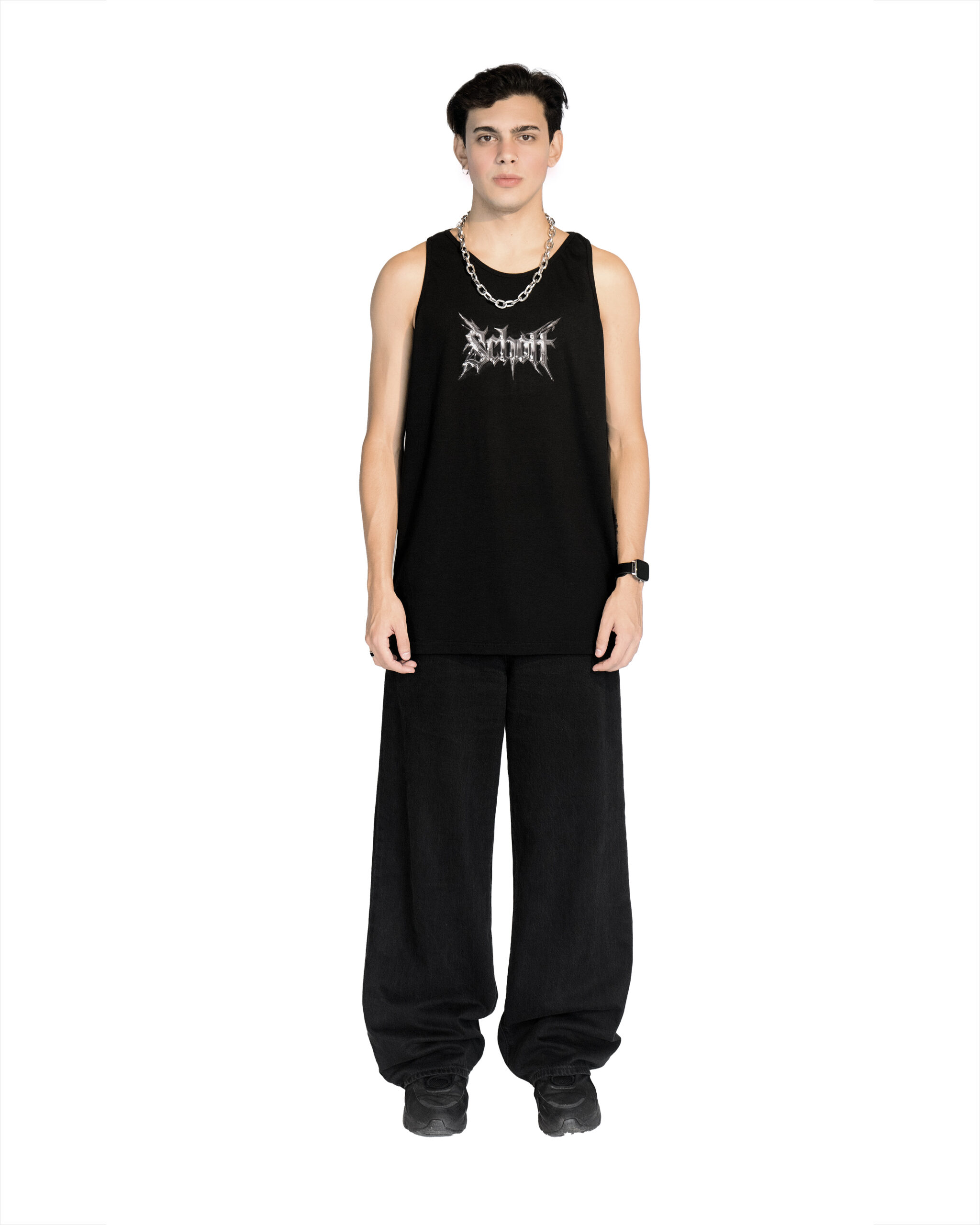 Musculosa negra de jersey con corte clásico y  estampados de logo Schott en frente y espalda . Básico y antemporal.